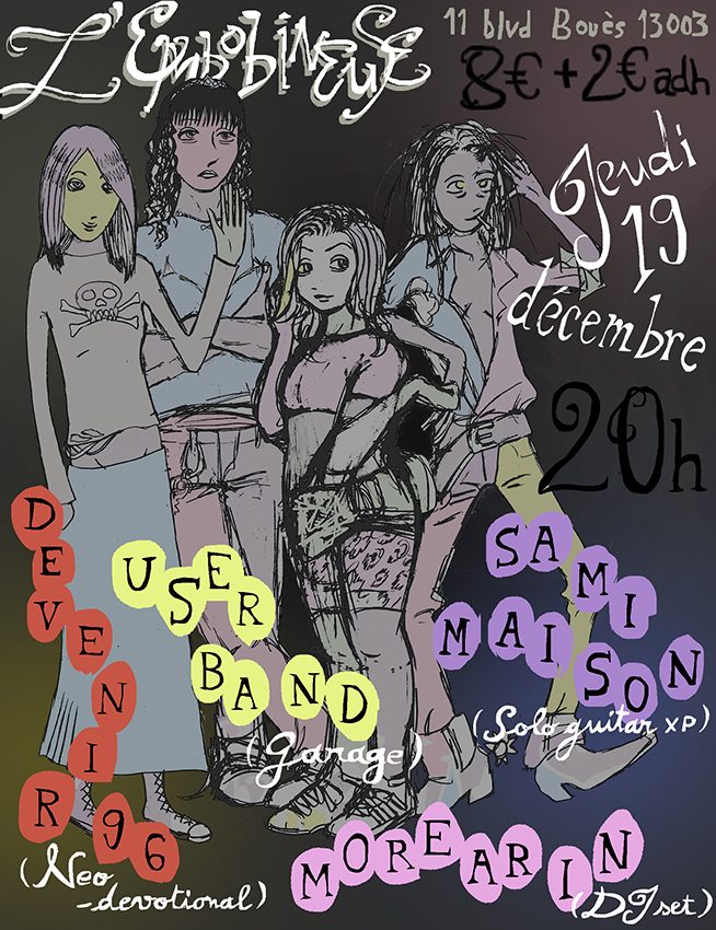 2024 Affiche faite pour des concerts à l'Embobineuse à Marseille supervisée par les conseils de Rune <3